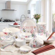 剑林 景德镇陶瓷56头韩式餐具套装 红袖...