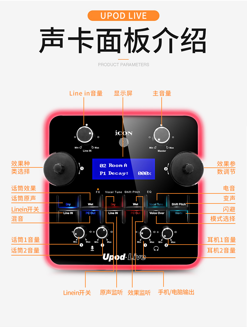 ICON Upod live艾肯声卡直播唱歌手机专用设备全套官方旗舰网红专业级麦克风套装usb外置抖音k歌录音户外独立