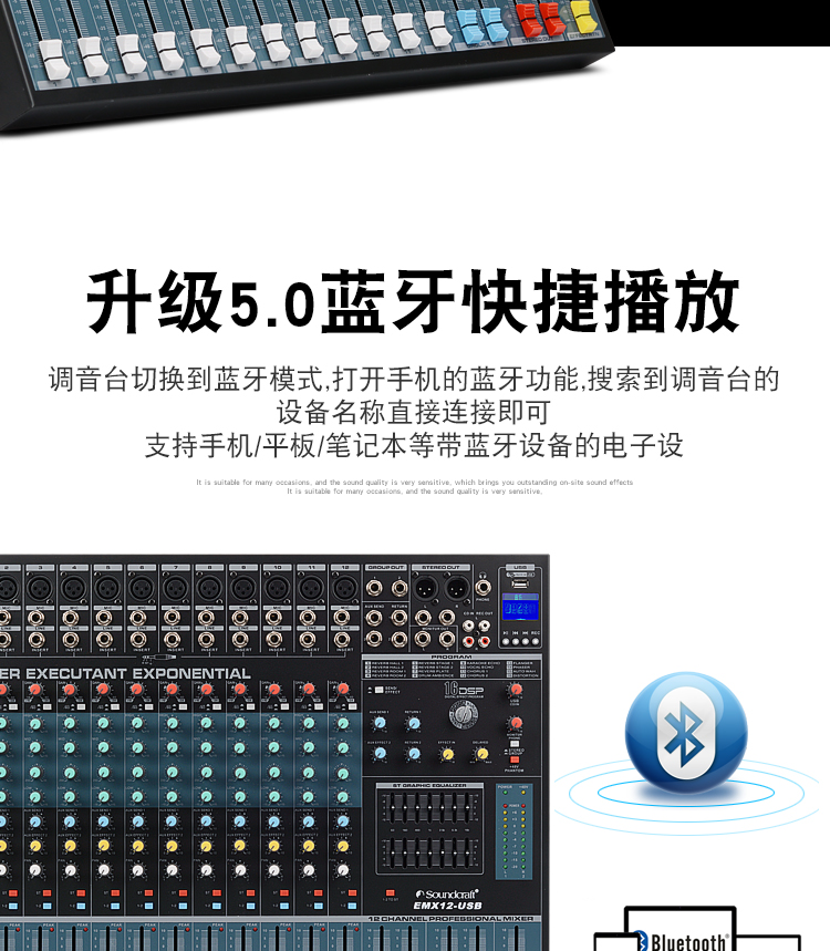 声艺调音台EMX8 12 16 24路带蓝牙混响效果编组舞台婚庆演出热销
