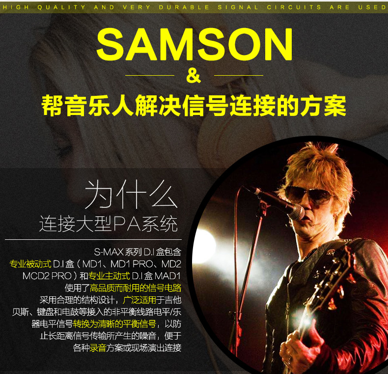 SAMSON山逊MD1 MD2 PRO贝斯键盘单块MCD2 MDA1吉他效果器演出DI盒