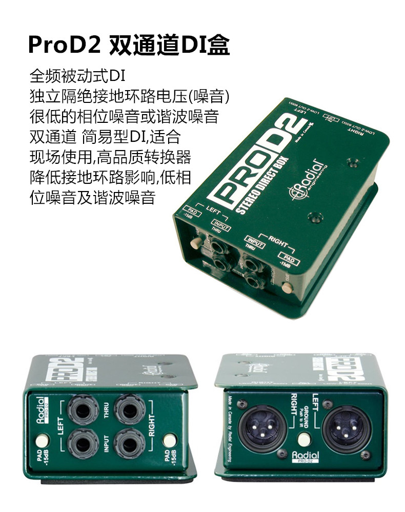 Radial PRODI PROD2 吉他DI盒 贝斯直插 键盘乐器 无源DI