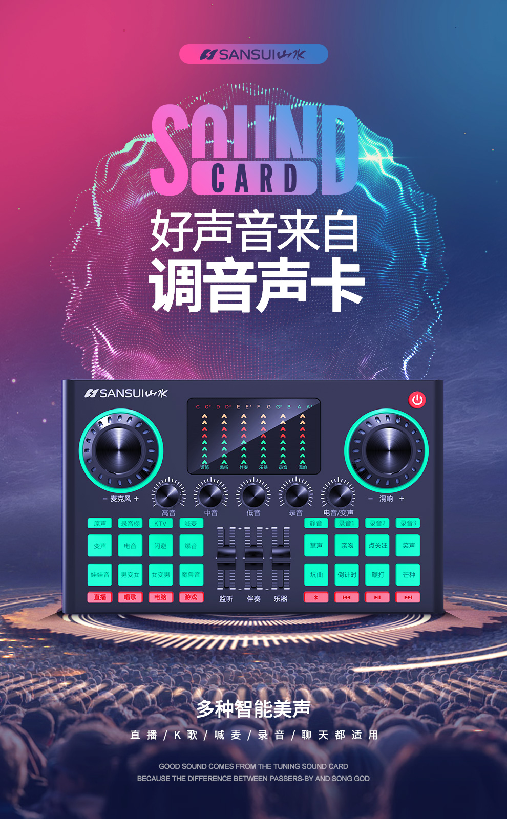 山水V97S声卡唱歌手机专用直播设备全套台式电脑麦克风网红主播抖音快手通用装备k歌神器话筒全民一体套装