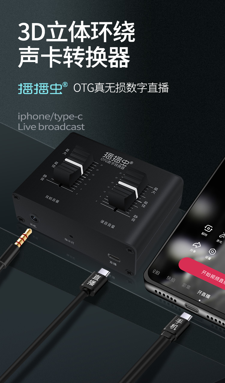 直播一号艾肯电脑内外声卡转换器手机转接线适用于苹果安卓
